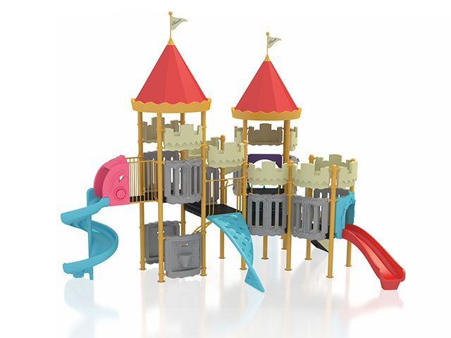 | Descriere: | Ansamblu de joacă cu temă castel, prevăzut cu două turnuri acoperite, cu trei tobogane diferite, spiralat, dublu, şi curbat, precum şi cu o căţărătoare răsucită. | ||||||||||||||||||