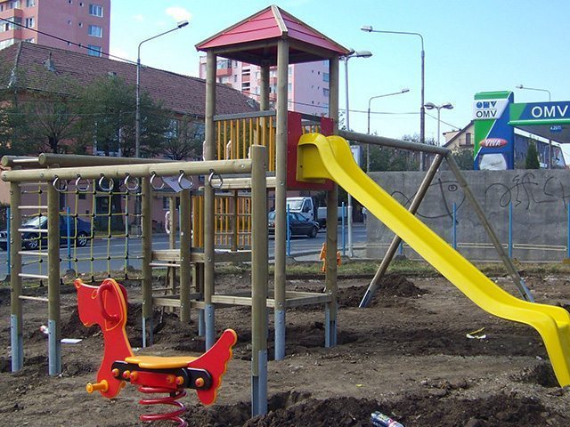 Descrierea lucrării:Perfect integrat în arhitectura Sibiului, locul de joacă din strada General Vasile Milea a devenit o atracţie a zonei datorită numeroaselor leagăne şi balansoare, carusele şi căţărători, deosebit de apreciate în rândul copiilor. Aceştia se pot căţăra imitându-l pe Spiderman, pot să urce în turn şi sş salveze prinţese imaginare, se pot da în carusel asemeni lui Peter Pan, sau pot călări ponei ca şi voinicii din poveşti, totul într-un cadru liniştit şi viu colorat, plin de veselia specifică copilăriei.