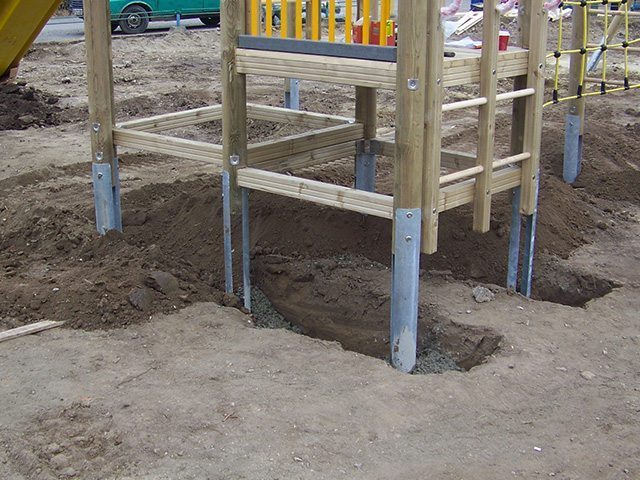 Montajul tuturor acestor echipamente s-a realizat într-o singura zi. Ancorarea s-a făcut prin turnarea unor fundaţii de beton. În funcţie de echipament, gropile au avut dimensiunile cuprinse între 0.50m  x 0.50m x 0.50m în cazul jucăriilor pe arc şi 0.40m x 0.40m x 0.80m pentru celalalte echipamente.