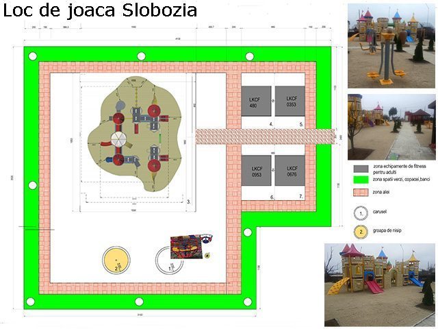| Echipamente montate: | Ansamblu de joaca LK4K32438 Aparat fitness LKCF0353 Aparat fitness LKCF0480 Aparat fitness LKCF0676 | Aparat fitness LKCF0953 Banca adulti LKOG00126 Carusel LKCA20221 |